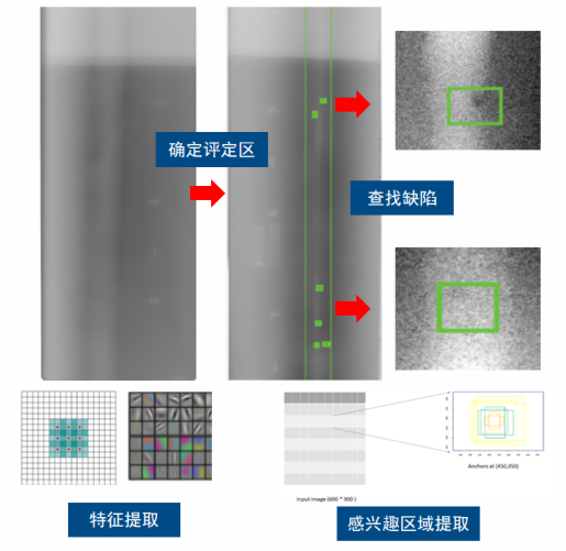 通过高清度扫描仪将底片进行数字化处理,并对电子底片进行智能管理(包括其智能归档、智能评定等评片阶段的全流程功能)。利用深度学习技术,训练海量底片数据,实现焊缝和缺陷的智能识别,替代繁重人工工作,显著降低劳动强度,提高检测效率。将OCR技术应用于底片图像的处理,使图像中的文字能够被自动识别并提取,这有助于进一步的分析和处理。数字底片叠加过程涉及图像配准和图像融合,由基于特征点匹配的图像配准方法可以精准高效的找到特征点并进行图像叠加。