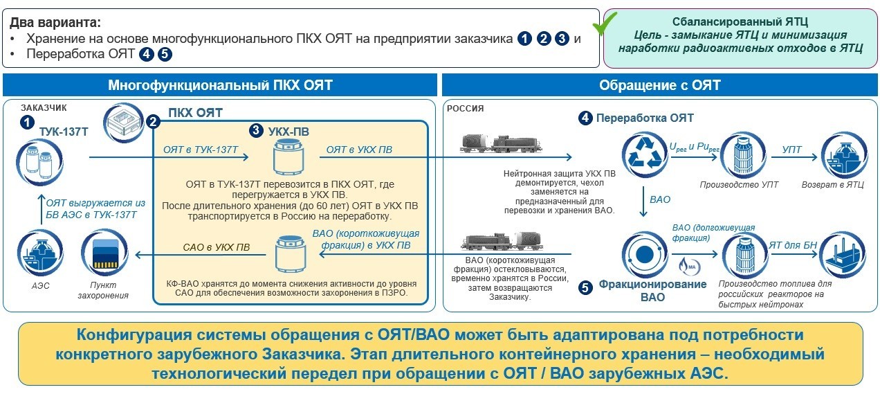 几乎所有配备 VVER 反应堆的新核电站的客户都在考虑在厂址长期储存乏燃料的可能性。如果Rosatom国营公司不及时开发出有竞争力的乏燃料长期储存系统解决方案来支持新的建设项目,那么运营组织很可能会购买外国解决方案并就进口乏燃料进行后处理进行谈判,以及确保俄罗斯乏燃料后处理厂与外国TUK的技术对接将非常困难