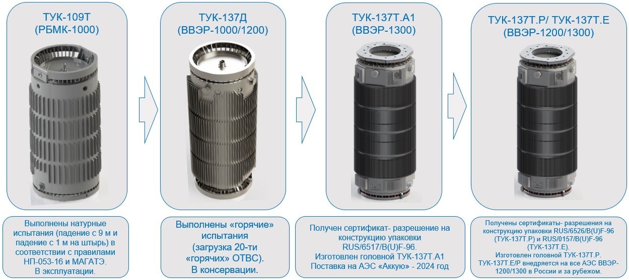 随着俄罗斯国家原子能公司在国外启动采用VVER-1200/1300反应堆的大型新核电站建设以及俄罗斯和白俄罗斯此类核电站开始运行,情况发生了巨大变化。如果俄罗斯列宁格勒核电站-2和新沃罗涅日核电站-2以及白俄罗斯核电站首先需要一个运输集装箱,那么对于没有直接铁路连接和/或专注于长期运输的外国核电站-乏燃料的现场储存,对两用运输包装装置(TUK)的要求成为核电站建设项目的一个组成部分。