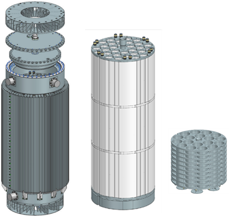 2013年至2018年期间。生产了一台 TUK-141O(用于VVER-1000反应堆燃料组件)和两台 TUK-140(用于VVER-440反应堆乏燃料组件)。所有容器均采用德国球墨铸铁(球墨铸铁)改性高强度铸铁坯体制造。在俄罗斯,可拆卸部件(箱)已制造完毕,包装和总装也已完成。俄罗斯没有进行深钻和中子防护供应作业。确实,他们能够在 Energotex JSC 企业对 TUK-140 外壳进行“精加工”机械加工,并在球墨铸铁外壳上涂上内部防腐涂层。有趣的是,这些运输型TUK实际上是根据德国的经验设计的,而在世界范围内,TUK的演变却是相反的——两用型TUK是由运输型TUK创建的。将 TUK 升级为双用途设计的任务是通过增加容量和优化(降低成本)设计来解决的。最明显的设计决策是使用氦气作为冷却剂(同时增加容量)和针对大批量生产进行优化的铸造体。这些解决方案尚未在俄罗斯一次性、小规模的运输 TUK 供应任务中扎根。国内工业在没有内部批量订单的情况下,无法解决组织生产TUK-141O/Castor 1000型铸造容器体的问题(铸造球墨铸铁体所需的液态金属质量约为140吨),当时没有重大的投资成本,而且投资没有意义,因为预计不会有连续订单。我不得不走另一条路。
