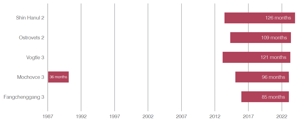 Mochovce 3号(斯洛伐克):虽然其建设始于1987年,但实际建设时间为36个月,原因是其建设在中途暂停并在2015年重新启动。