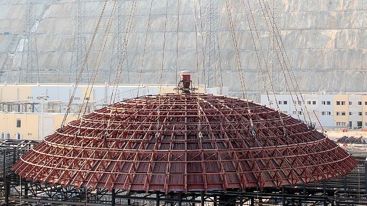 土耳其阿库尤核电站一号机组外部安全壳建筑物圆顶顶部已安装到设计位置,整个过程耗时六个多小时。