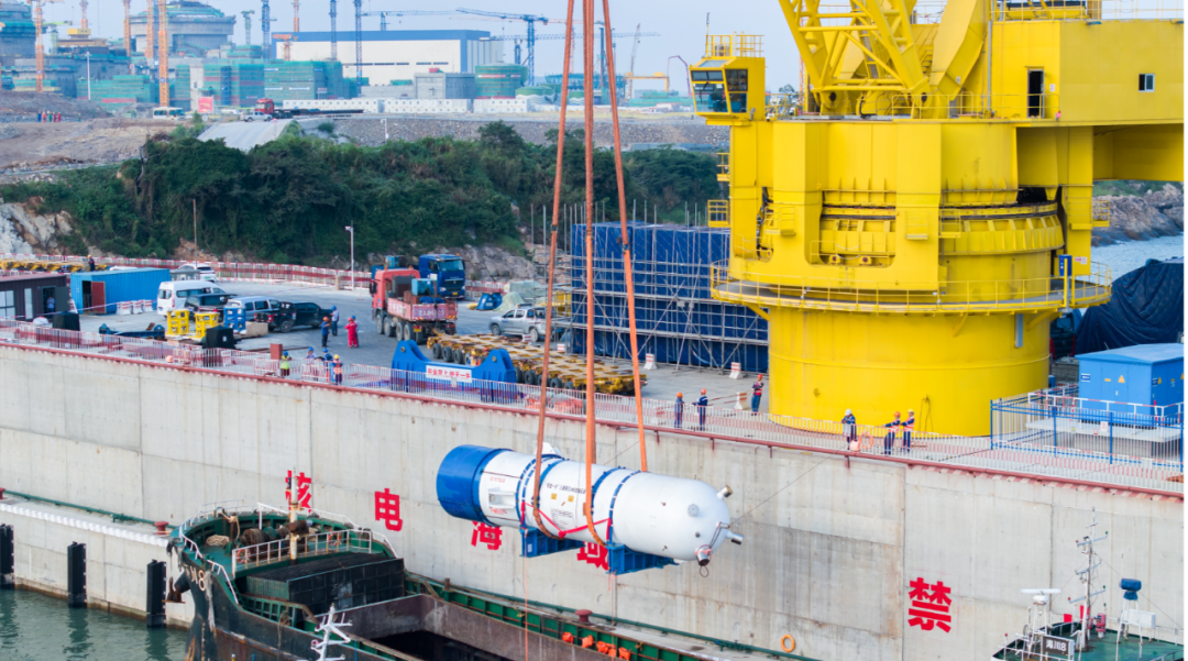9月26日,由东方电气股份有限公司与东方电气(广州)重型机器有限公司联合体承制的三澳核电项目2号机组稳压器运抵三澳核电项目重件码头。