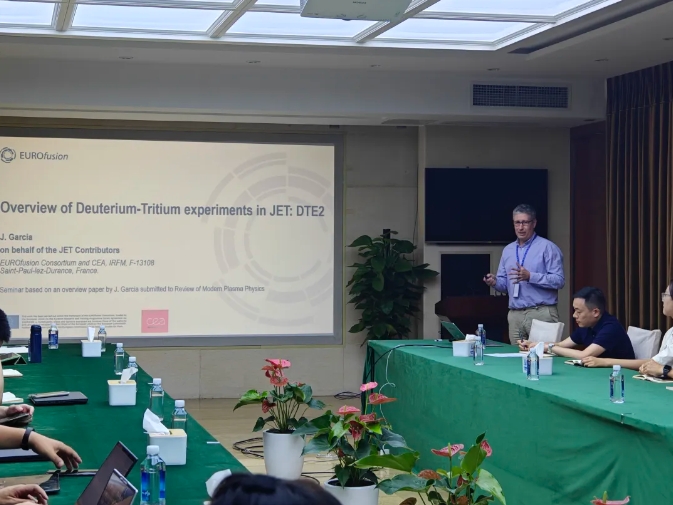 访问期间,Garcia教授就JET和JT-60SA装置实验情况作了专题报告,围绕装置实验物理、运行方案设计、理论模拟等方向与科研人员进行了深入探讨,为新一代人造太阳“中国环流三号”实验提供了宝贵的建议。