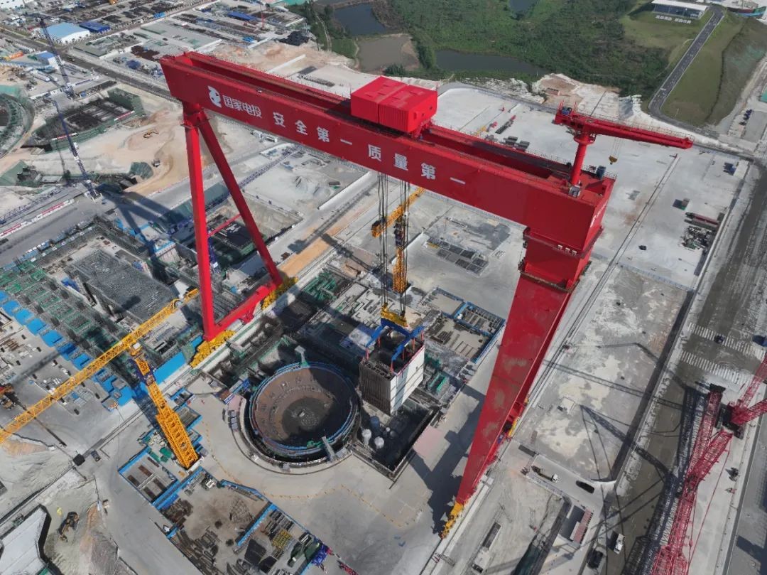 10月9日9时59分,全球核电建设领域首个大型龙门吊——国家电投廉江核电1600吨龙门吊顺利完成吊装工作,廉江核电一期工程2号机组千吨级模块CA20模块一次精准就位,这对于打造核能领域新质生产力有重要意义。