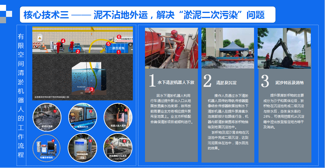 ● 环境友好:这种清淤工艺减少了因清淤作业可能产生的环境污染,因为它避免了因停产清淤可能造成的水质恶化和生态影响。