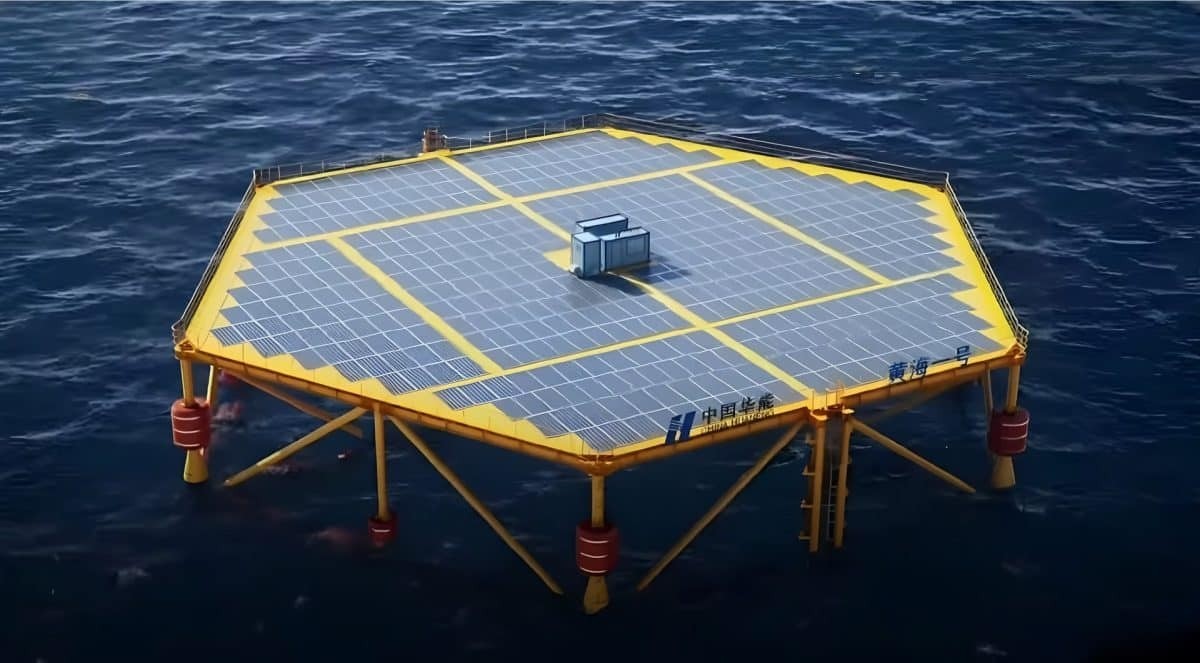 黄海号1号高10米,依靠安装在结构底部的64个浮标系统组成。连接到海底的电缆将其固定到位,系统本身将能够承受 10 米高的波浪。该太阳能发电厂的测试设施面积为1,624平方米,配备了434块光伏板。