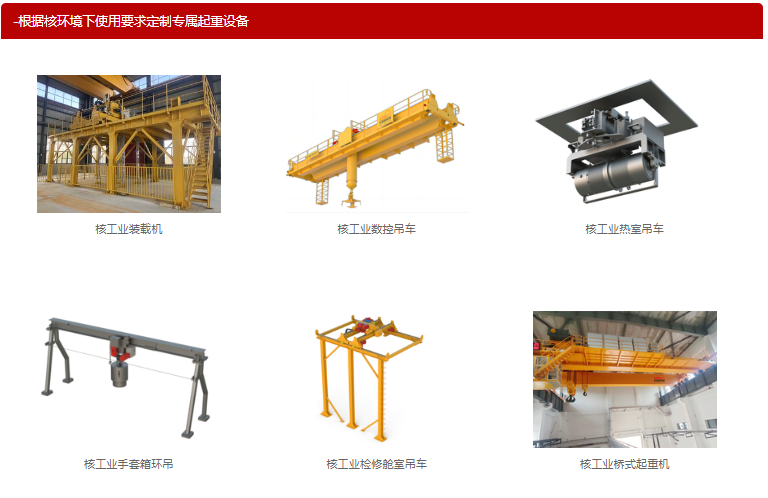 【产品类别】:核工业装载机、核工业数控吊车、核工业热室吊车、核工业手套箱环吊、核工业检修舱室吊车、核工业桥式起重机等