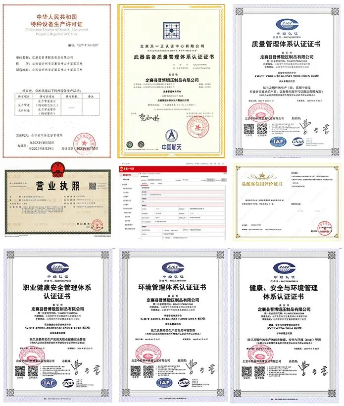 我公司始终坚持“以创新迎接机遇,用流程创造价值”的经营理念,使企业在自我发展与激烈的市场竞争中得到了长足的发展,特别是在装备提升和技术进步以及产品开发方面收到了很好的成效,真正实现了超常规、跨越式发展。目前公司已取得特种设备压力容器法兰生产许可证、ISO9001认证、14001环境管理体系认证、HSE健康、安全与环境管理体系认证、45001职业健康安全管理体系等证书。