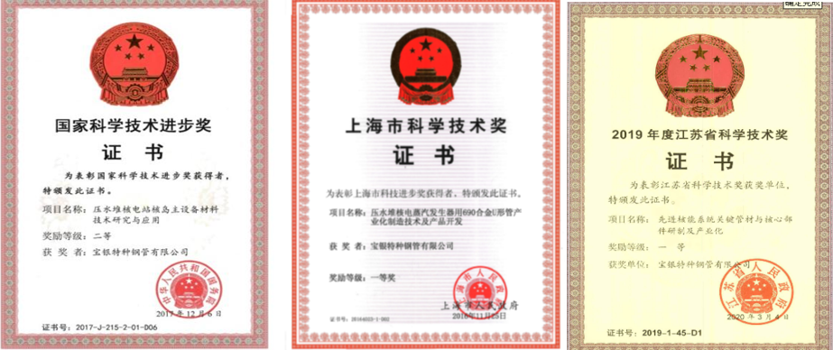 宝银特材科技股份有限公司是由中国宝武集团、中国广核集团、中国华能集团、江苏高投、宜兴城投、银环集团共同投资组建,注册资本1.2亿元,占地面积547,000㎡,是一家专业从事核电、火电、石油化工、轨道交通、航空航天等领域关键管材及制品研发和制造的国家级高新技术企业。公司承担了多项国家科技重大专项子课题的研究开发,在国内率先实现了超临界、超(超)临界火电机组用系列关键管材、压水堆核电站用690U形管材、第四代核电高温气冷堆蒸汽发生器用换热组件,快堆及小堆用管等关键材料的国产化,是国家科技重大专项产业化示范单位和国家重大装备关键材料制造基地。