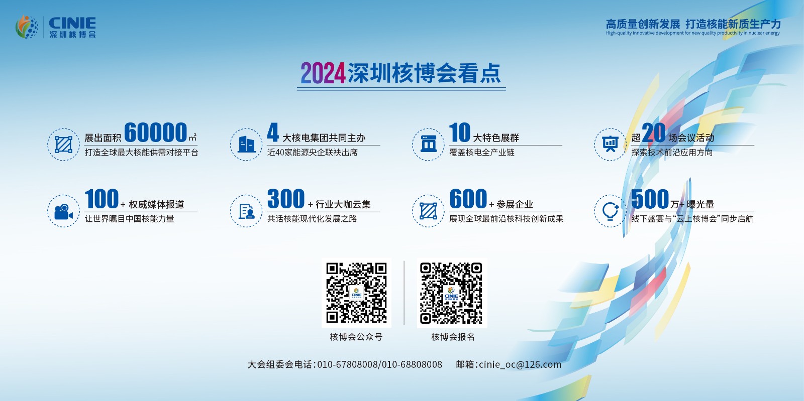 为推动高质量创新发展、打造核能新质生产力,由中国能源研究会、中国广核集团有限公司联合中国产学研合作促进会、中核集团、国家电投、中国华能、中国大唐、国家能源集团共同主办的“2024第三届中国核能高质量发展大会暨深圳国际核能产业创新博览会”(以下简称“深圳核博会”),将于11月11-13日,在深圳会展中心(福田)隆重召开。