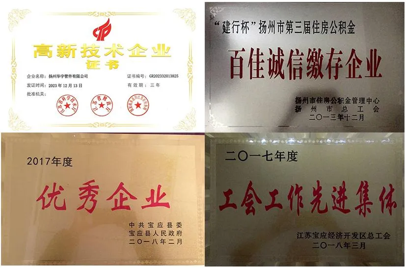 扬州华宇管件有限公司坐落于著名的荷藕之乡之江苏省扬州市宝应县。自2000年成立以来,就立志成为极具国际竞争力的管件和法兰制造行业的领军者。在制造上围绕“安全、质量、成本、交期”理念,为全球客户提供完美的产品解决方案。在战略上放眼全球,以“专业、技术、品牌、国际化”促进公司发展。我司目前现有在职人员240余人,其中高级职称达5人、中级职称达15人、初级职称达30余人,专业技术人员达60余人,这些人员能完全满足核电、石化、电力、船舶等各种关键产品在设计、工艺、检验试验各方面的需求。经过多年来不断的发展,我司目前厂区占地面积16余万㎡,建筑面积8余万㎡。主要制造对焊管件、锻制管件和法兰。主要加工设备150多台/套,主要理化性能检验设备20多台/套,主要大型设备有:多台千吨以上液压设备,最大吨位4000吨,主要用于高压厚壁弯头、三通、异径管、管帽成型等;三台不锈钢弯头冷挤设备,最大加工能力为Φ762mm弯头挤压机;4台套中频弯头推制设备最大加工能力达Φ1067mm X60mm;热处理设备(含惰性气体保护炉)6台套等。并装备了与产品各种检验试验要求相匹配的全套设备,主要有高温万能试验机、常温万能试验机、常温及低温冲击试验机、金相显微镜、进口台式全谱直读光谱仪和化学分析仪器;RT、UT、MT、PT无损检测仪器等检试验设备。以先进的生产设备、齐全的检测手段、雄厚的技术力量、科学完善的管理体系、积极贯彻“6S”现场管理和全面质量管理理念,从原材料采购到制造流程到直至最终检验都进行了严格、有效的控制,确保了产品的品质。经过多年持续技术创新和品牌建设,我司相继研发出“奥氏体/铁素体不锈钢管件”、“Φ1067mm碳素钢/合金钢热推制高压无缝弯头”等一批高新技术产品,荣获了多项发明专利和实用新型专利。并先后受邀参与国家能源部、国家核安全局组织的碳素钢Φ914mmX60mm无缝三通/ P280GHΦ813mmX32mm等产品研(试)制并取得成功。另外,参与起草了中华人民共和国能源行业标准《压水堆核电厂用碳钢和低合金钢:第17部分:主蒸汽系统用推制弯头》(NB T20005.17 2014)。我司依据ISOO9001、ISO14001、OHSAS18001建立起了质量、环境、职业健康安全管理体系(HSE),并取得了相应的“管理体系认证证书”。依据 HAF003(核电厂质量保证安全规定)建立起核级管件制造质量保证体系,取得了“民用核安全机械设备制造许可证”。经过二十年的持续发展,本公司目前是国内最大的管件和法兰的生产基地之一,拥有品种齐全的弯头、三通、异径管、煨制弯管、管帽等生产线、锻制管件及法兰制造生产线,并且建立了企业级检验试验中心。材料涉及碳钢、低合金钢、不锈钢、双相钢、镍基合金等,制造执行国家标准和/或国际通用标准,例如:GB、HG、SH、JB、DL、SY及ASME、DIN、JIS、ISO、RCC-M等。本公司拥有四大优势:专业优势、研发优势、规模生产优势、品牌优势。长期受国内外知名公司的青睐,产品在国内外市场上占有一席之地,被广泛应用于中核、广核、中石油、AIR PRODUCTS(空气化工)、AIR LIQUIDE(液空)、TOYO(东洋)、HYUNDAI(现代)、GE等中外重点工程项目上,享有良好的声誉,口碑较佳。例如:本公司是中核集团合格供应商、中广核集团的合格供应商,中石油一级网络成员单位,AIR PRODUCTS(空气化工)战略合作供应商,沙特SABIC认可供应商等。扬州华宇管件有限公司以“合作双赢、价格合理、质量过硬、交期准时、服务优良”的理念与您共创辉煌。公司主营产品与技术特点管道及其附件产品描述:包括三通、弯头、异径管、管帽、法兰、锻件管件以及紧固件。我们的优势:*产品覆盖全,覆盖低压、中压、高压无缝或有缝以及锻造产品以及各类等级紧固件,覆盖国际标准、国家标准和行业标准 * 产品检测手段齐全,理化、无损检验资格和设备齐全。 *稳定和优质的供应链。公司荣誉