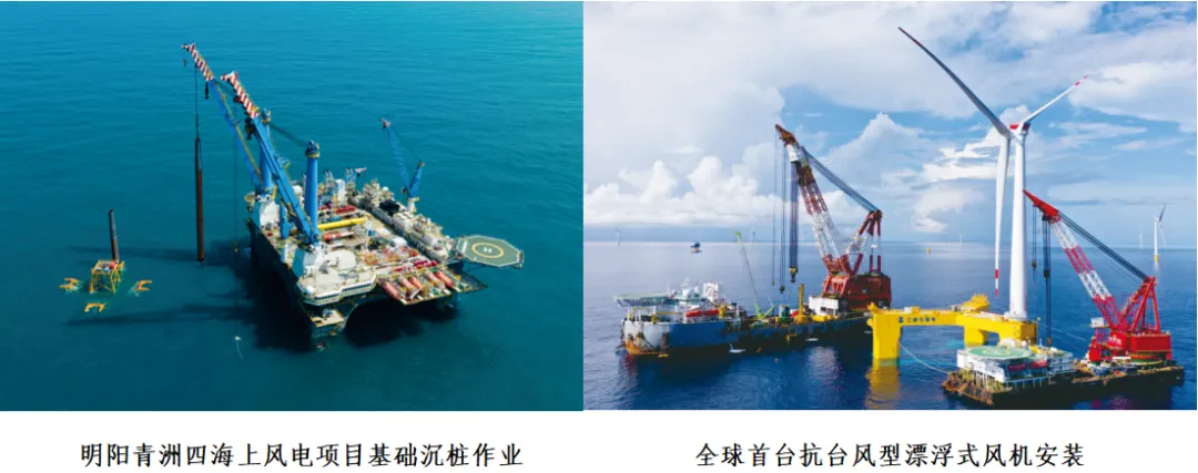 广州打捞局积极响应总书记“碳达峰碳中和”目标,大力拓展海上风电及海上光伏等可再生能源业务,分别在阳江和汕尾设立风电分公司,全力打造海上清洁能源施工领域领军企业。近年来,高质量完成中广核、三峡、国电投、中节能等海上总承包项目。自主研发的水下导向架大大提高了导管架基础沉桩的效率和精确度,引领行业先进技术水平。完成国内首个吸力筒导管架基础安装,屡次刷新国内最大吨位单桩安装纪录,完成全球首台抗台风型漂浮式海上风电机组安装,使我国漂浮式海上风机安装取得零的突破,为深远海风电规模化开发奠定良好基础。