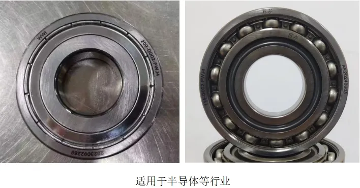 2)、化学冷媒及陶瓷覆膜轴承适用于涉及冷媒条件下外界有腐蚀型介质侵入工况的超长寿命轴承。冷媒(氟利昂)回收机用于回收制冷机械中的制冷剂。无论在环保还是经济的角度上,广泛用于家用、商用中央空调、制冷机生产厂家及售后服务。