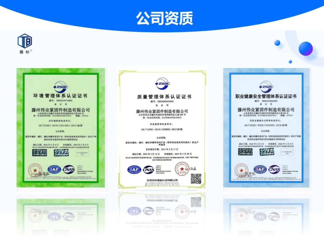 滕州伟业紧固件制造有限公司位于科圣墨子故里山东滕州,是一家集生产、加工、销售及配套服务为一体的专业紧固件生产企业。是由原国有企业滕州标准件总厂改制而成,并获得中国石化联合会合格供应商资格和山东省紧固件协会指定检测中心认证。