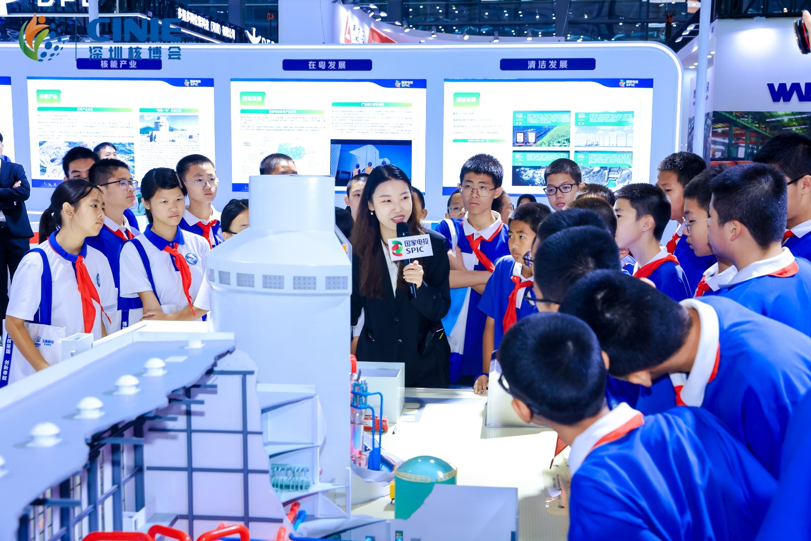 2024年11月13日,深圳会展中心迎来了一群怀揣科学梦想与探索热情的年轻面孔。这一天,多所深圳当地学校的师生们齐聚一堂,共同参与了一场别开生面的研学活动——“核”你研学,“电”亮梦想,这是第三届“中国核能高质量发展大会暨深圳国际核能产业创新博览会”(简称“深圳核博会”)的重要组成部分。此次活动旨在通过实地参观与亲身体验,让学生们深入了解核能科技,感受国家核工业发展的辉煌成就,激发他们对科学的热爱与追求。