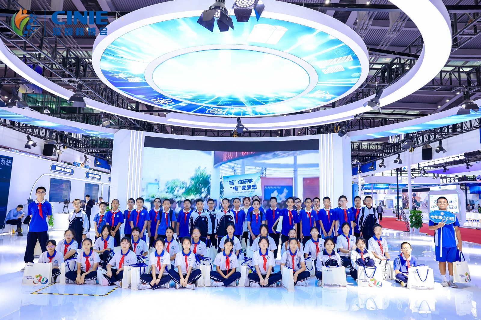 9时整,专车缓缓停靠在深圳会展中心前,镜头定格了他们青春的脸庞和对知识的渴望。随后,通过预留的贵宾通道,学生们踏入了这座科技与梦想交织的殿堂。会展中心内,60,000平方米的展览空间被精心布置成多个区域,从大国重器主题展区到新品发布区,再到核能科普展区,每一处都散发着科技的魅力,吸引着学生们的目光。