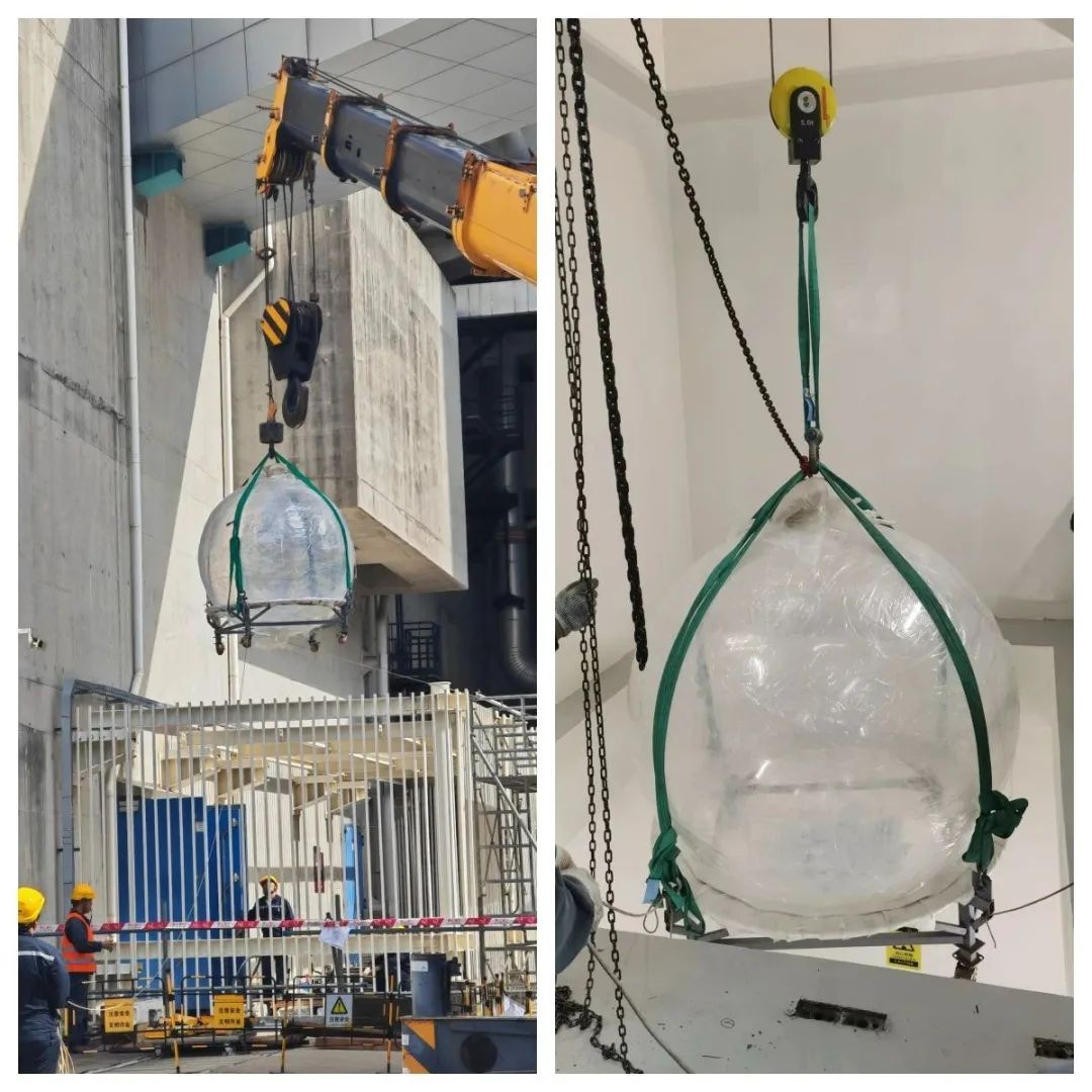 目前,台山中微子实验项目实验设备现场安装工作已全面启动,台山核电于11月2日实施了钢罐、铜壳、有机玻璃球等探测器主体设备吊装入场。