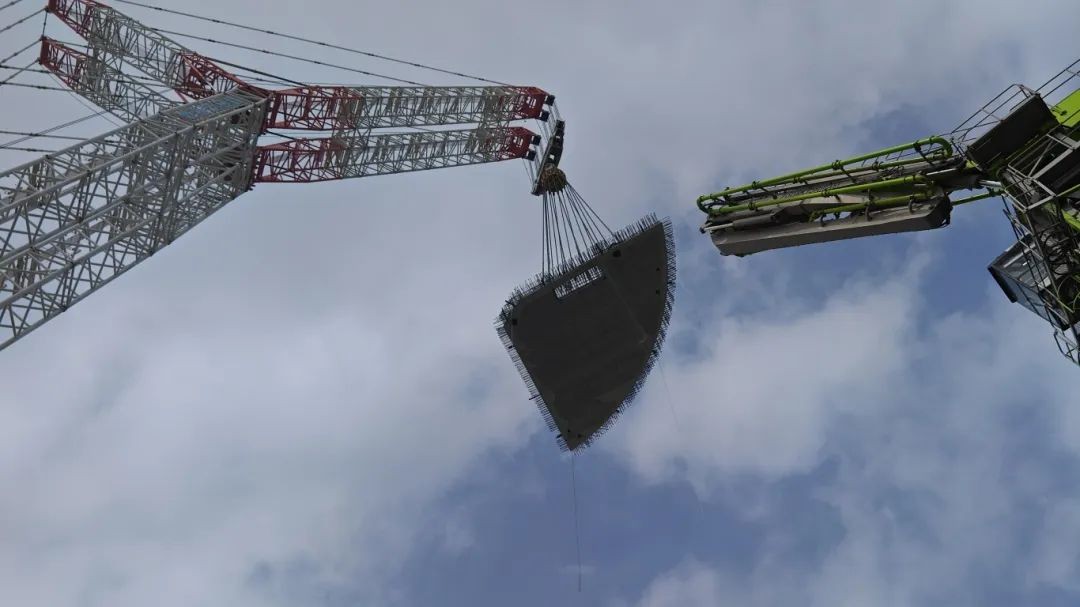 传统水箱施工中,弧形顶板水平钢筋与墙体立筋相互交错,吊装就位难度大。为了提高施工精度、一次到位完成吊装,采用了BIM技术对吊装工作全程模拟,1:1还原墙体预留插筋排布,避免钢筋碰撞,结合三维扫描仪使钢筋、混凝土结构的位置实现毫米级的精准调整。这种精准建模和扫描技术不仅提高了钢筋绑扎的准确性,也减少了因安装错误导致的返工。模块化施工技术的创新与BIM、三维扫描仪的结合,不仅提供了一种新的施工方案,还解决了传统施工模式下复杂工序之间的相互制约,使得水池底板施工提前完成,缩短穹顶吊装主工期20天左右。