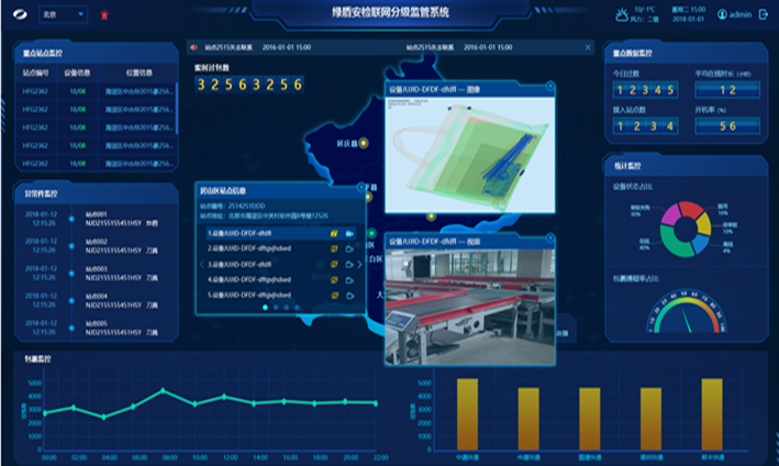 同方威视的安检联网系统实现了对物流快递行业中各层级、各环节的远程监控和管理。安检员的工作状态、设备的在线情况以及海量的业务情况全部汇聚于监管中心。利用数据挖掘引擎进行智能分析以进行预警、安全评估、资源优化配比,实现各区域站点的统筹监控管理。通过丰富的功能模块,同方威视为物流企业提供了全面的安全监管能力。