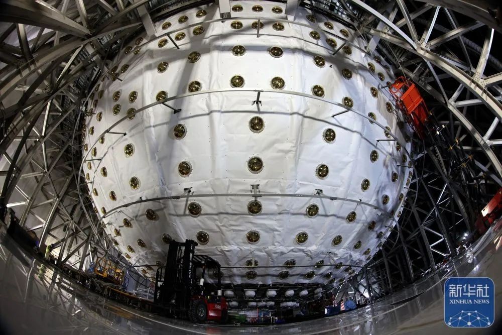 我国大科学装置——江门中微子实验的探测器主体日前建成。江门中微子实验位于广东江门开平市,将以测量中微子质量顺序为首要科学目标,同时开展多项重大前沿交叉研究。记者日前探访探测器主体建成后的江门中微子实验。