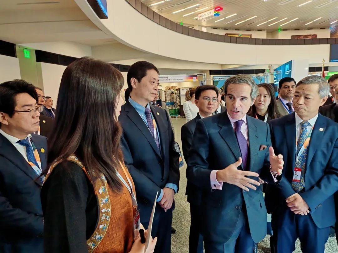 国际原子能机构总干事格罗西、副总干事刘华出席活动,并参观中国核技术应用成果展。国际原子能机构副总干事纳贾特,联合国粮农组织总干事屈冬玉、联合国工业发展组织副总干事邹刺勇、中国常驻维也纳联合国办事处和其他国际组织代表团大使李松、国家原子能机构秘书长黄平、中核集团总会计师王学军,以及维也纳各国际组织代表和来自俄罗斯、古巴、泰国、叙利亚、苏丹、巴基斯坦等国家参加部长级大会的高级别官员、专家、媒体人士等200多人参会。