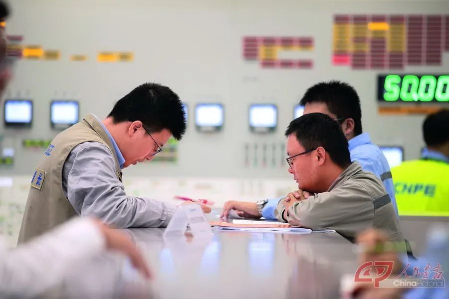 在福建漳州核电1号机组的中控室内,正在进行着值班工作人员之间的专业交接班程序,涵盖了对当前机组运行状态、系统参数、安全监控信息及待处理事项的细致交接。摄影 陈建/人民画报
