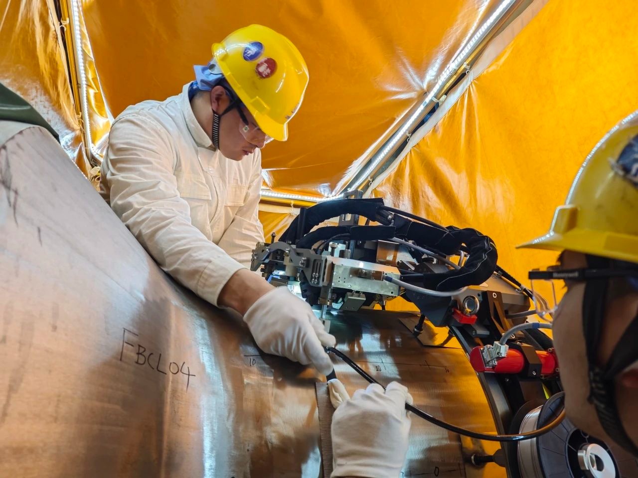 相比“华龙一号”堆型,CAP1000的主管道焊接工作难度更大,施工过程中没有过渡段调节管道错位偏差,焊接质量和变形控制要求也更高。为了确保焊接质量,项目团队采用激光建模技术,结合激光测量跟踪、百分表等精密手段对焊接过程进行全程监控,确保了焊接工作的万无一失。
