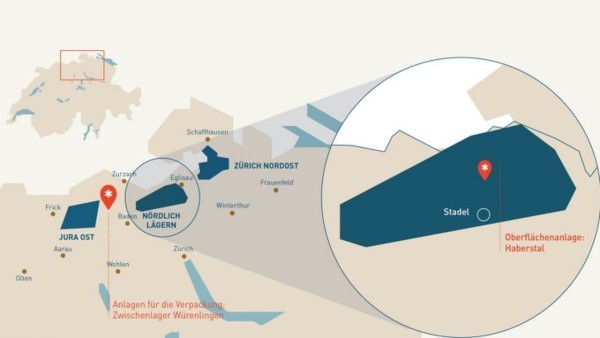 2022 年 9 月,经过 14 年的选址过程,纳格拉 建议位于瑞士北部的诺德利希-莱根 (Nördlich-Legern) 作为深层地质处置库所在地,乏燃料封装设施将建在阿尔高州维伦林根 (Würenlingen) 现有的 Zwilag 临时处置库上。存储设施的入口,即所谓的地上设施,将建在苏黎世州施塔德尔村的哈伯斯塔尔区。