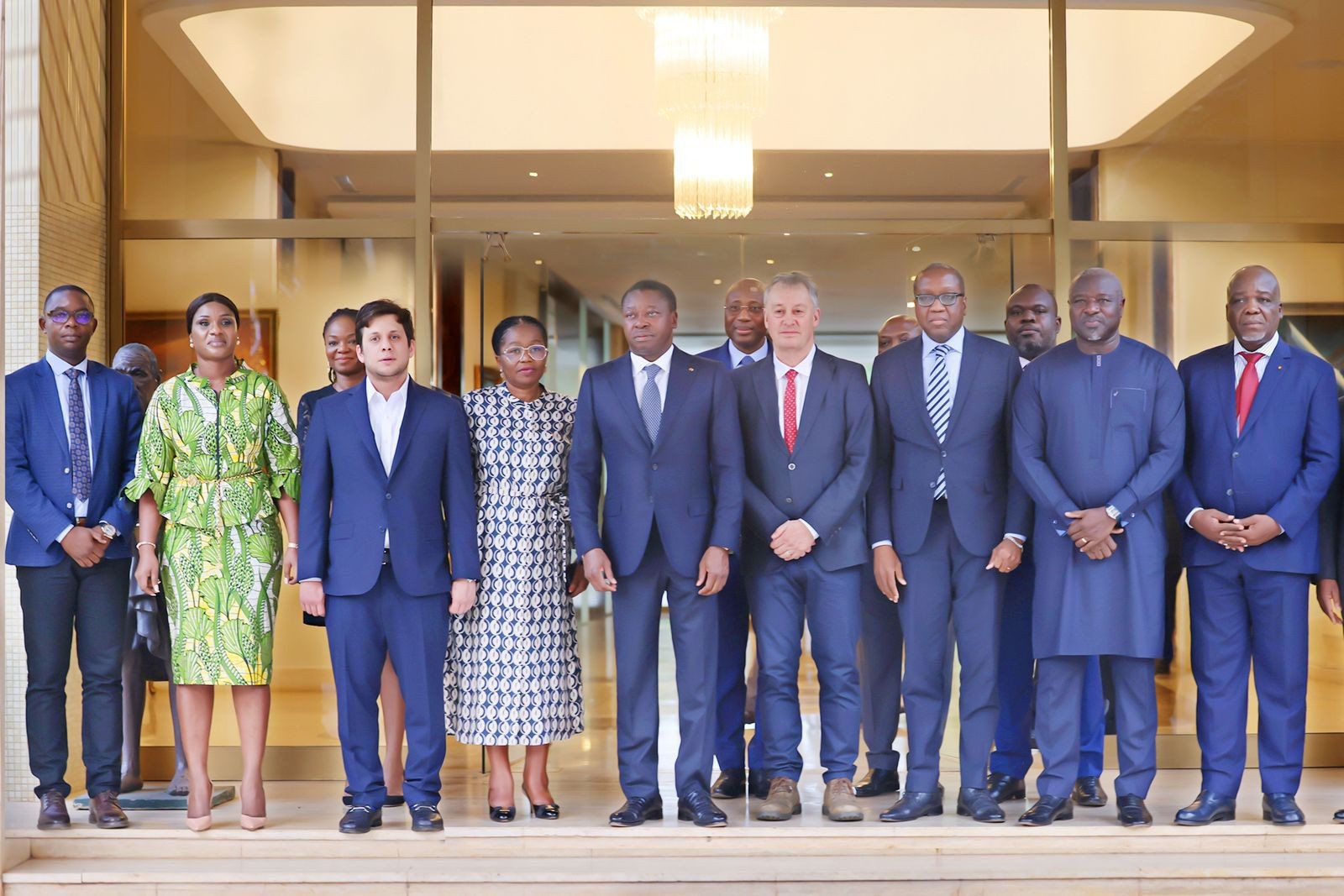 图 2 - NANO Nuclear Energy Inc. 代表与多哥共和国总统福雷·纳辛贝阁下、多哥总理维克托瓦尔·托梅加·多格贝、矿业和能源资源部长罗伯特·科菲·梅桑·埃克洛阁下以及 NANO Nuclear 非洲执行顾问委员会主席拉西纳·泽尔博博士在一起。