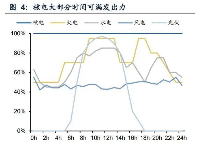 核电不受外界天气、季节、自然资源等环境因素影响,除检修外,全天出力可维持100%,完全不用担心。