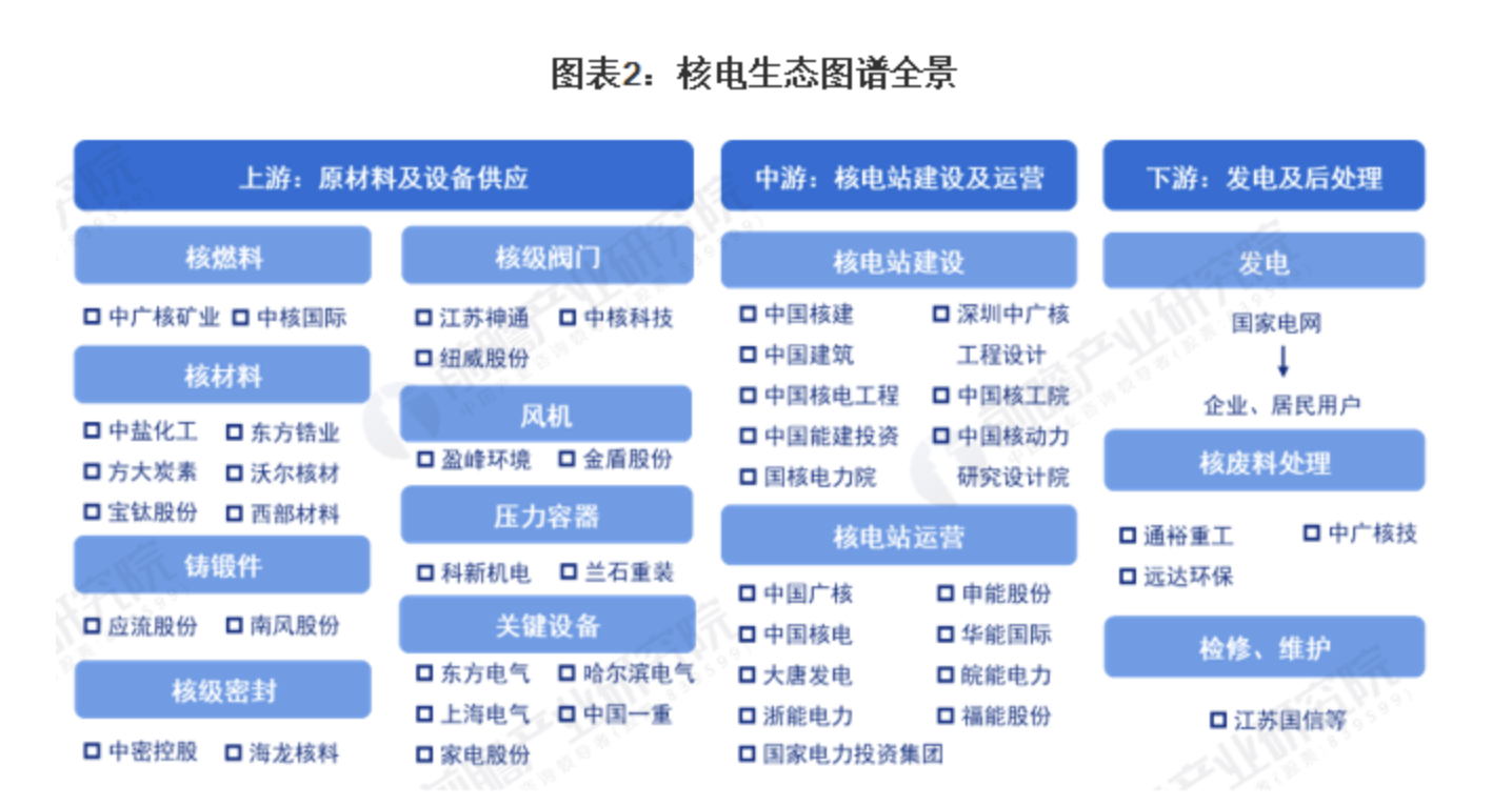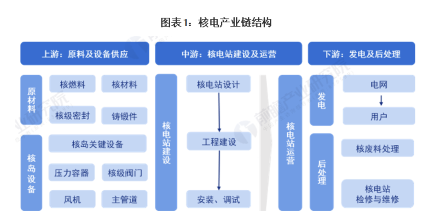 上游环节:包括核燃料、原材料生产,以及核电设备的制造等。