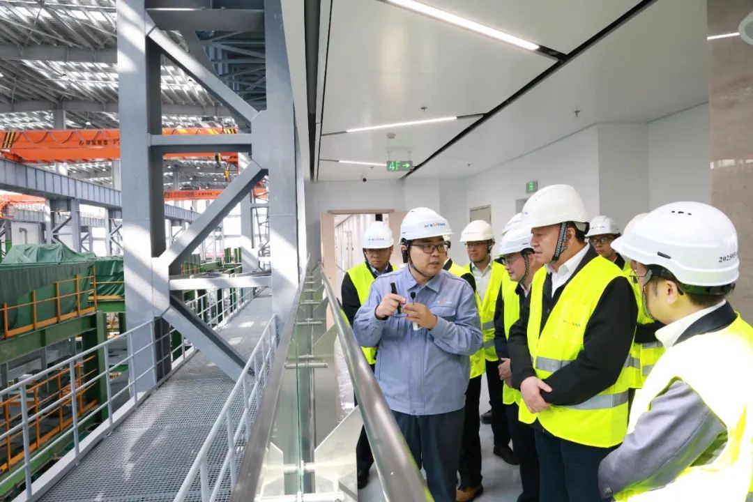 在实验厂区,杨长利听取了中广核研究院关于南方中心建设进展、先进核电原创技术策源地工作成效、中山科研基地建设与实验台架布局规划,以及集团科技人才培养体系的构建与实施进展汇报,检查了施工安全管理系统和实验工艺监控系统运作情况。随后,深入现场实地查看首个实验台架建设情况以及3R生产楼、专项研发楼、研发办公楼和学术交流中心建设进展,并详细了解了中山科研基地功能布局和实验台架技术参数。