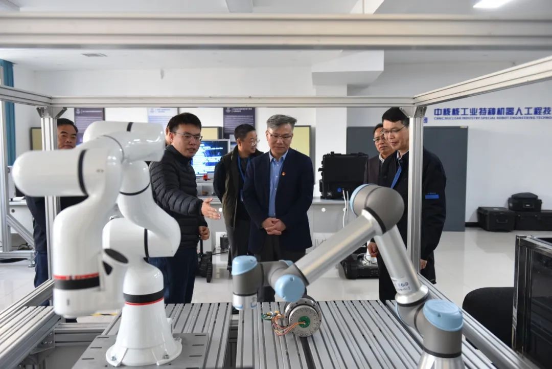 调研期间,戴雄彪一行观看了核电安全生产管理平台(ASP-1)、“核睿思语”核电大模型、核工业互联网平台(DHP)等演示,在中国核电网络安全实验室、核工业特种机器人实验室实地参观了试验设备设施,与科研人员进行交流,深入了解相关科研进展与成果。