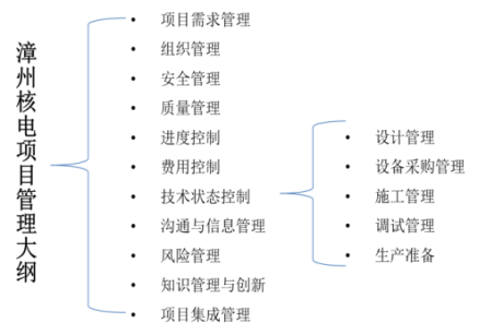 “华龙一号”示范工程结合中国30年的核电工程建设经验,以系统性思维策划了《“华龙一号”示范工程项目管理大纲》,在工程建设四大控制、四大领域以及不同阶段明确了顶层管理要求。在漳州核电“华龙一号”建设过程中,进一步系统性对项目管理大纲进行优化完善。