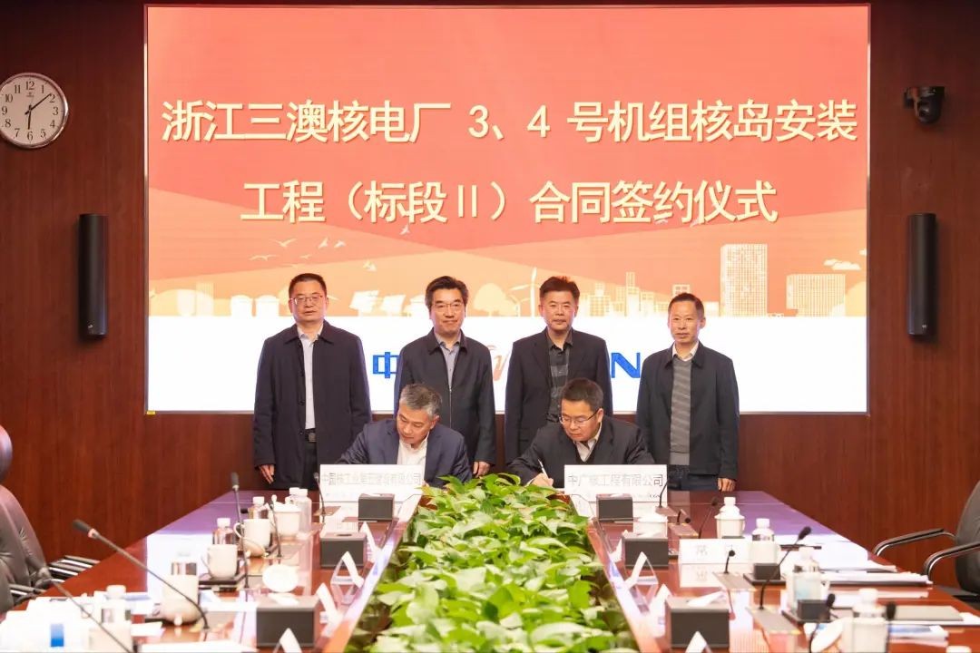 12月23日,中核五公司与中广核工程有限公司签订浙江三澳核电厂4号机组核岛安装工程合同。中国核建党委书记、董事长陈宝智,副总经理王海平;中广核工程有限公司党委书记、董事长、总经理宁小平;党委委员、副总经理杨亚璋,施工管理中心主任陈李华;中核五公司总经理、党委副书记李星文等领导出席此次签约仪式。