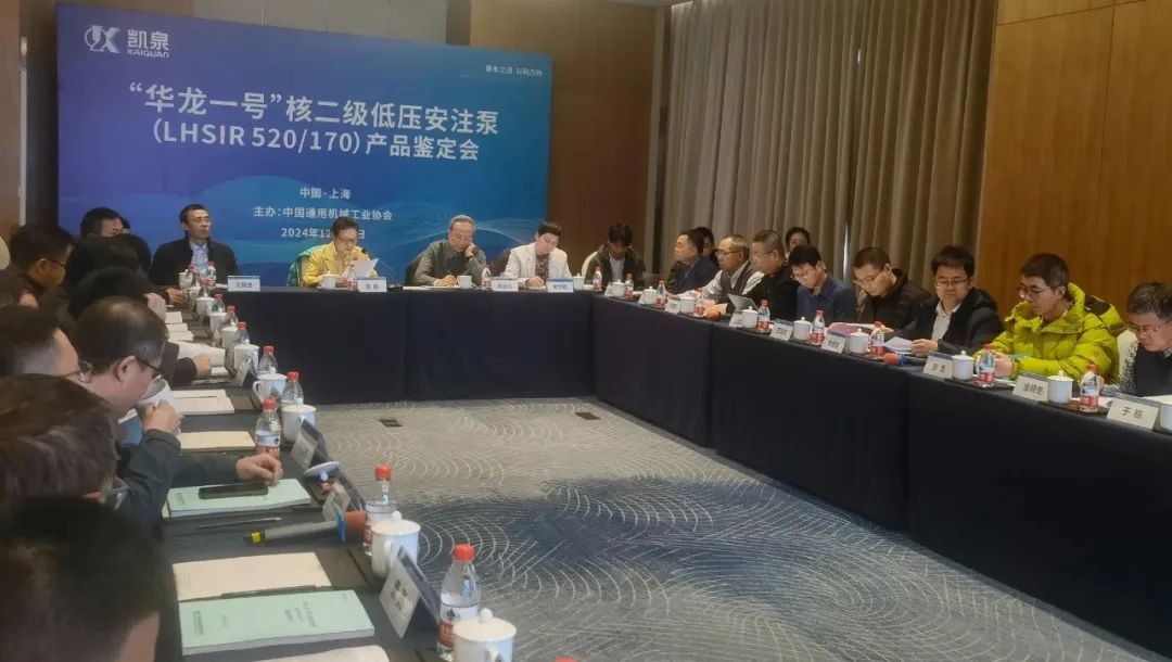 2024年12月23-24日,中国通用机械工业协会在上海组织召开了由上海凯泉泵业(集团)有限公司研制的“华龙一号核二级低压安注泵(LHSIR520/170)”产品样机鉴定会。鉴定会由中国通用机械工业协会会长黄鹂主持。