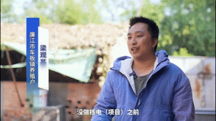 廉江市车板镇养殖户 梁观基:没做核电(项目)之前,路不好走,远一点的收猪商不愿意来,现在方便很多了,经常有人打电话来问价,(价格合适)马上来,价格(每斤)可以涨几毛钱。核电项目落户之后,交通方便了,生活也方便了,(市场上)菜也多了。