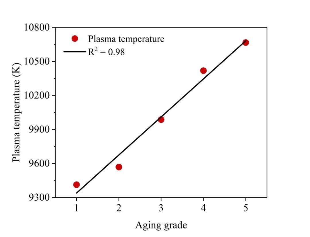 图3 等离子体温度与老化等级之间的相关性