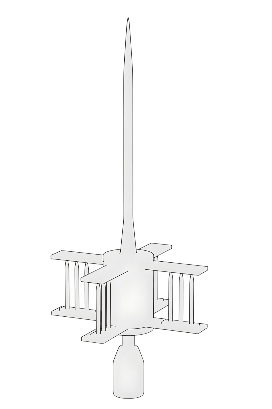 普通避雷针通过其尖端放电,形成电阻较小的通路,引导云中的电荷通过避雷针入地,从而保护建筑物免受雷击。放射性避雷针利用放射性物质使周围的空气大量电离,提高避雷针能效,吸引更远云层上的电子,达到提高避雷针能效、扩大保护区域的目的。