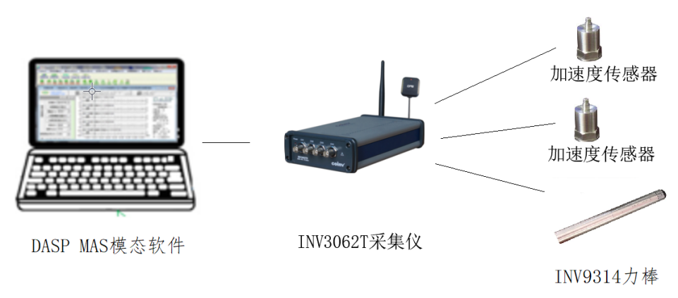 对于本次测试,激励方法采用的是力锤激励,选用的是型号是INV9314大型力棒,测力范围达到100kN,特殊构造,含有先进的弹性聚能装置,能有效增强激励力和延长激励时间,使激励能量集中于低频段,提高脉冲激励响应的频响函数分析精度,尤其适合大型低频结构的激励。