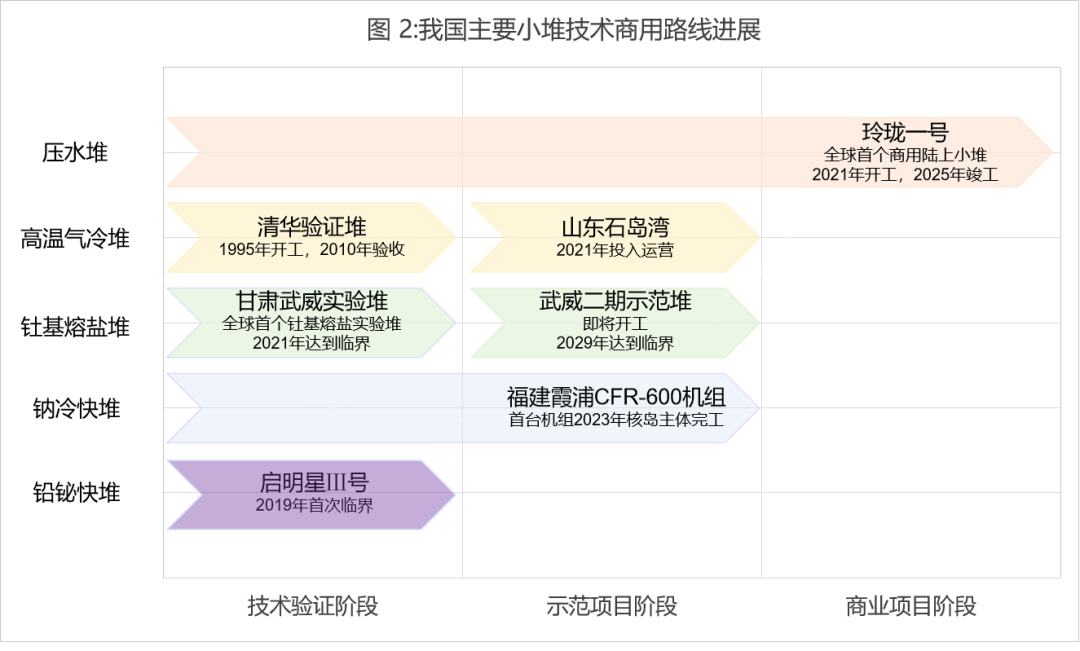2011年日本福岛核事故以来,我国内陆核电一直处于停滞状态。近年来,虽然小堆技术快速发展,其小型化、多用途、更为灵活的核能利用方式更多受到业内的认可,但我国目前在运在建的小堆项目仍局限于沿海地区,个别内陆省份落地了研究堆且功率不大。