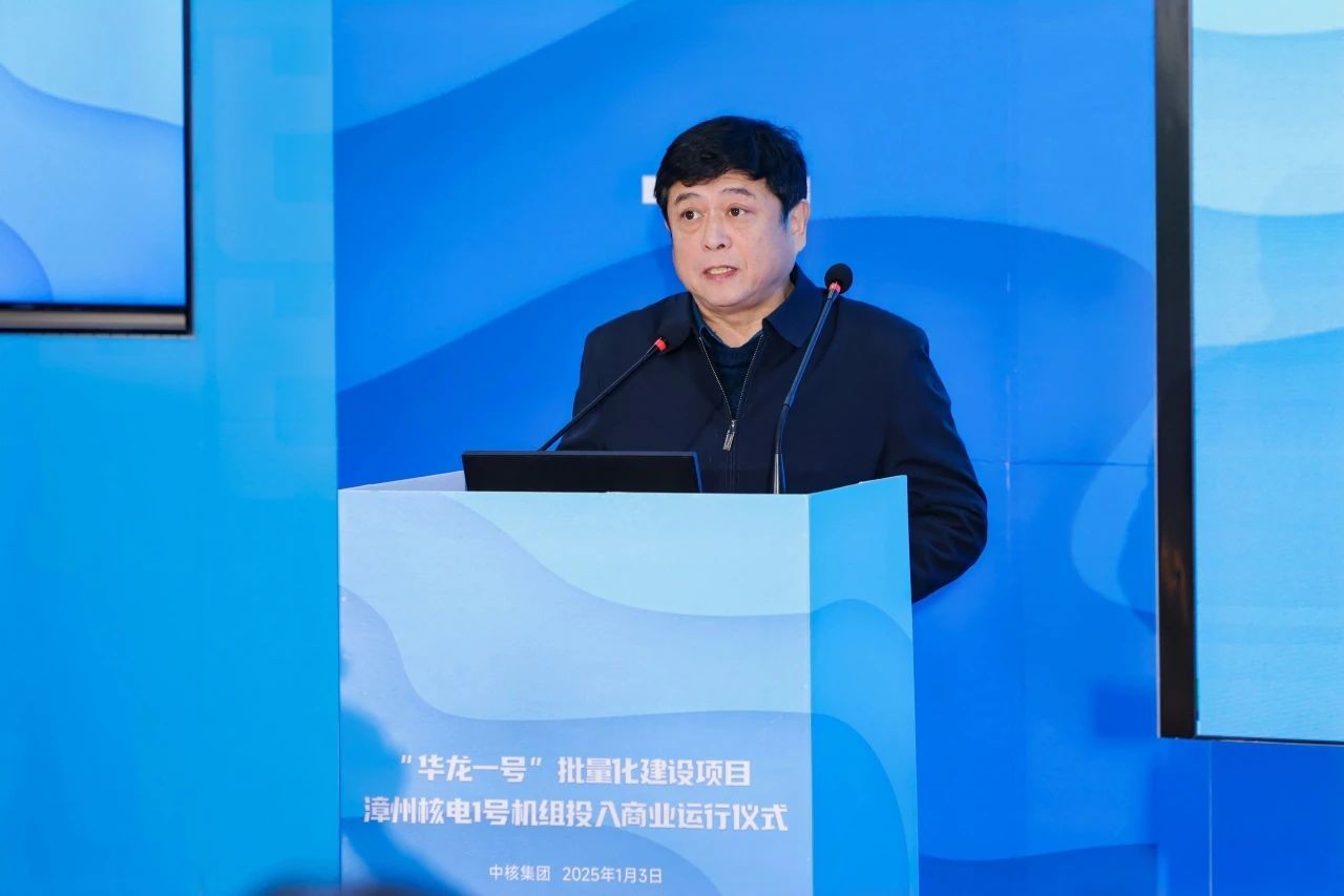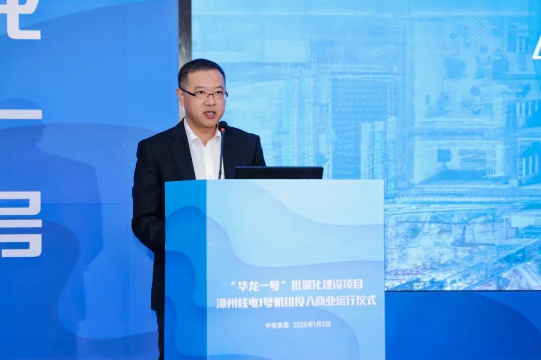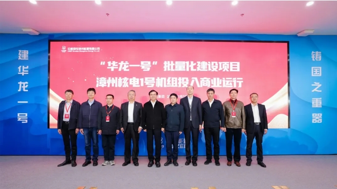 1月3日,“华龙一号”批量化建设项目漳州核电1号机组商业运行仪式在漳州核电现场成功举办。生态环境部(国家核安全局)核电安全监管司领导,漳州市委书记王进足,中核集团党组成员、副总经理张凯,国家能源投资集团总经理助理、重大项目办主任贾彦兵,福建省发改委一级调研员陈剑出席活动,中国核电总经理、党委副书记邹正宇主持仪式。