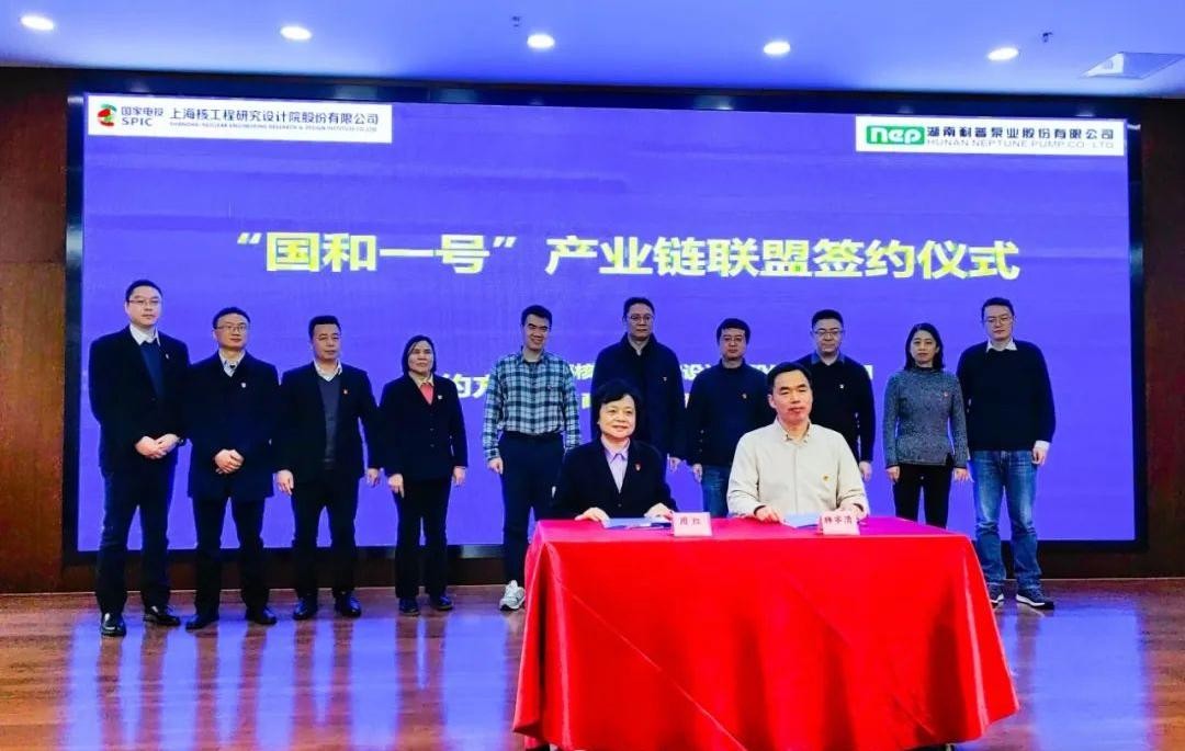 1月9日,上海核工程研究设计院股份有限公司(下称:上海核工院)与湖南耐普泵业股份有限公司(下称:耐普泵业)在长沙经开区正式签署了《“国和一号”产业链联盟共建协议》、《“国和一号”产业链党组织联建共建协议》,现阶段双方已签署的两个联合研发国产化项目“核电抗震柴油消防泵组”和“CAP1400厂用泵”正在执行中,本次专家组对核电抗震柴油消防泵组技术方案进行了评审,并见证了CAP1400厂用泵样机试验情况。这一系列协议及合同的签署,标志着两家公司在核电技术研发和产业链合作领域迈出了关键的一步,共同致力于推动我国核电事业的高质量发展。