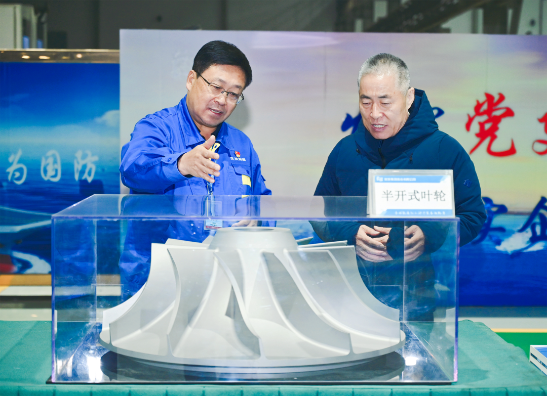 在戴继双的陪同下,崔学军一行先后参观了沈鼓集团展览展示中心、转子车间、定子车间、总装车间、核电车间,深入了解沈鼓集团的发展历程、重大装备国产化成果、技术创新体系、数字化转型成果、全生命周期服务以及数字化车间建设等情况。