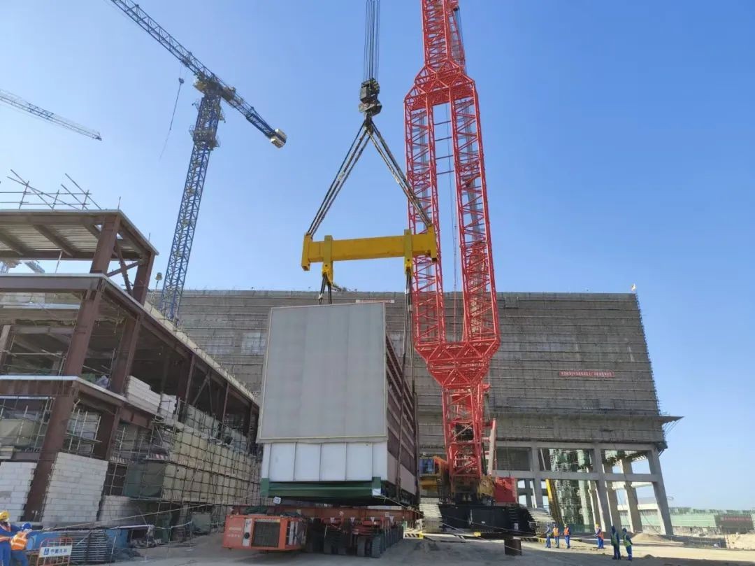 1月13日,陆丰核电项目#5机组首台凝汽器壳体模块吊装就位完成,标志着5号机组常规岛安装工作正式开启,此次吊装的凝汽器壳体模块由上海电气辅机厂供货,设备外型尺寸19260mm*5320*5760mm,吊装重量310T,2000T履带吊经过连续20小时的连夜转场,再历经21.5小时的连钩、试吊、旋转、平移等步骤,圆满完成首台凝汽器壳体模块精准就位,整个吊装过程平稳、有序、安全、可控。