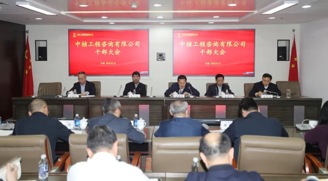 2025年1月16日下午,中核工程咨询有限公司召开干部大会,宣布集团公司党组关于中核咨询领导班子调整的有关决定。中核集团党组副书记刘建平出席会议并讲话,会议由集团公司副总经济师、人力资源部主任杨朝东主持。