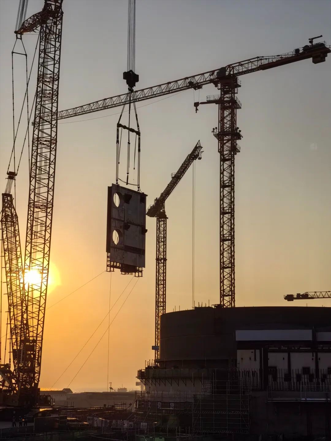 为确保本次吊装万无一失,辽宁核电与各参建单位紧密协作,通过每日专项例会、联合检查、事先推演等措施,高质量开展模块拼装、运输、吊装等环节的准备工作,顺利完成本次大型结构模块吊装任务,有力保障工程施工紧密衔接,为徐大堡核电厂1号机组的全面施工提供了坚实保障。