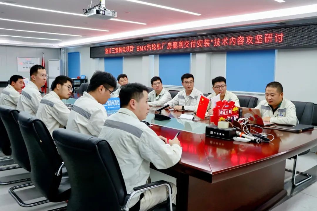 中建二局三澳核电项目部技术团队在前序常规岛主厂房建设经验上寻找改进空间,共推动完成华龙一号常规岛重要设计优化32项、施工方案优化25项,整体上优化了施工逻辑、简化了施工工序,达到促进度、控成本、创收益的目标,并结合安装需求,围绕BMX汽轮机厂房顺利交付安装节点涉及技术内容进行攻坚研讨,集思广益讨论易出现的技术难题及应对方法,秉承“技术先行"理念,明确个人攻坚任务,做好技术工作保障,助力核电汽轮发电机厂房高效履约。