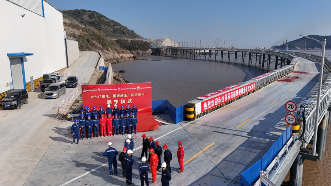 1月14日,由中海总局承建的金七门核电厂区钢便桥圆满完工并顺利通车,桥体在阳光下熠熠生辉,蔚为壮观。中核浙能、中核工程、中核咨询等参建单位领导与项目部全体成员共同见证了这一振奋人心的时刻。